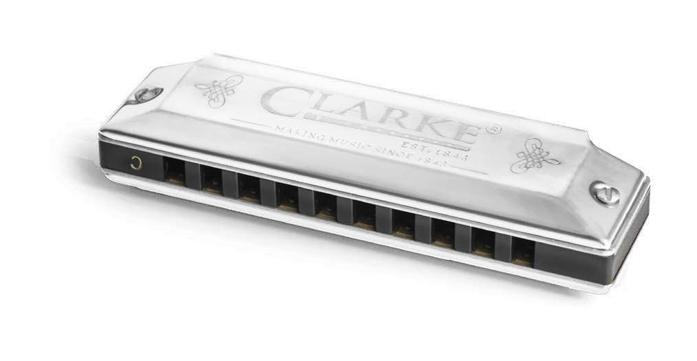 The Clarke 10 hole blues harmonica comes in the key of ‘C’, it features brass and silver alloy reeds, on 0.1mm brass plates and with an 8mm premium ABS comb. The covers are of 0.4mm stainless steel with an electro plated gold or silver finish with fancy engraving.