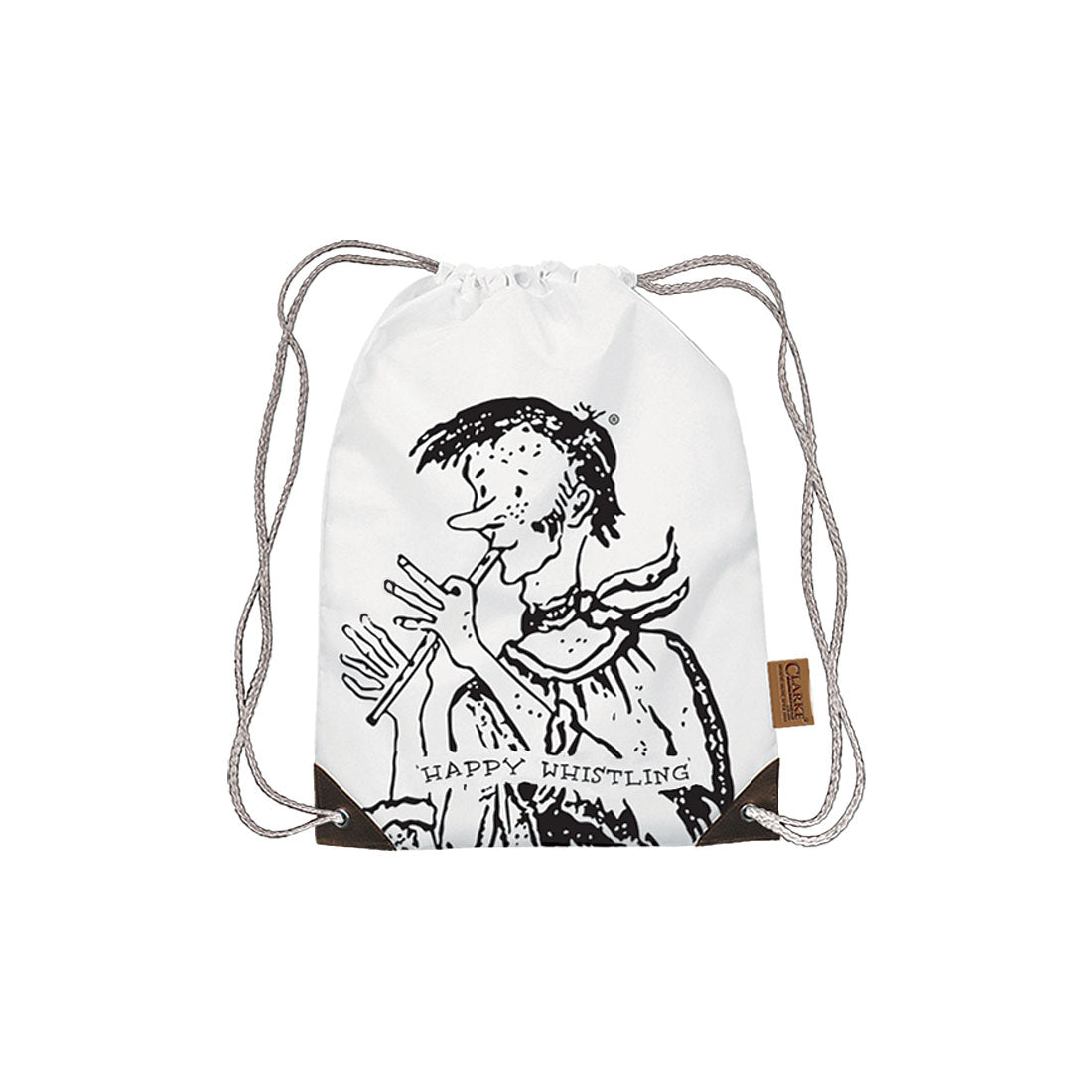This drawstring bag is designed for functionality and fun! Again, it features our popular Whistling Billy trademark. It is lightweight and versatile in use with a surprisingly large capacity and lots of little pockets to keep things organised. Available in black or white.