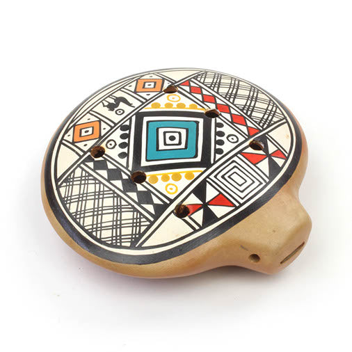 Discover the enduring melodies of ancient civilizations with these exquisite ocarinas, meticulously crafted from fired clay in Peru. Featuring vivid, traditional patterns and offered in a variety of colors, these instruments are both distinctive and stunning. Each ocarina comes packaged in a robust display box with easy-to-follow instructions, making it an ideal gift for any music enthusiast.