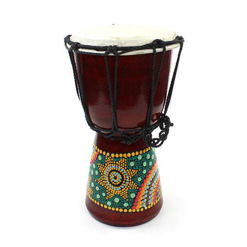 Our top-selling drum! This wooden djembe features vibrant, intricate dot painting, making it both a stunning decorative piece and a high-quality musical instrument. Each drum is hand-painted, ensuring unique design variations.