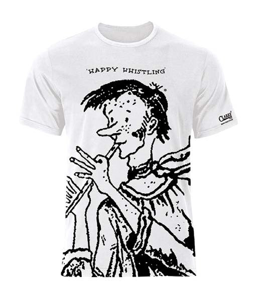 Our Clarke t-shirt features our popular Whistling Billy trademark. Cotton rich with a gentle touch of spandex for comfort and stretch. Available in black or white designs in five sizes for all the family.